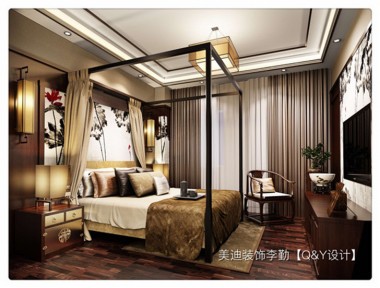 輝煌國際新中式風裝修案例圖—臥室