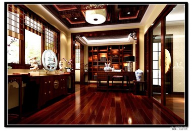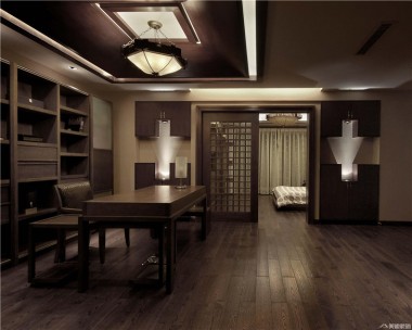 湘麓國(guó)際別墅新中式裝修效果圖-書房