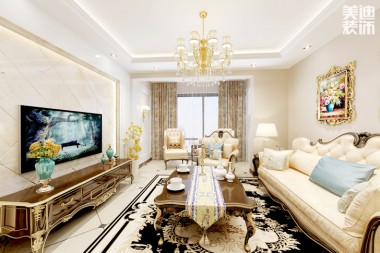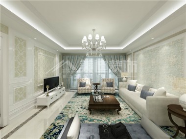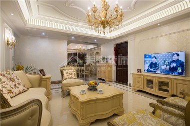 匯金城131平簡歐風(fēng)裝修案例圖—客廳