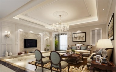 通用時代168平簡歐風(fēng)裝修案例圖—客廳