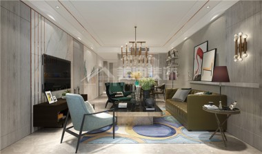 第六都119平簡歐風(fēng)裝修案例圖—客廳