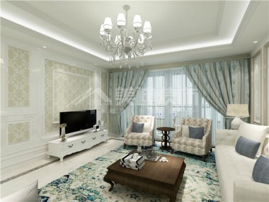 鈺龍?zhí)煜?1平簡歐風(fēng)裝修案例圖—客廳