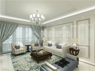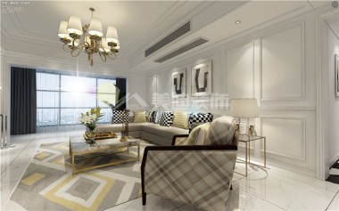 匯金城127平簡歐風(fēng)裝修案例圖—客廳