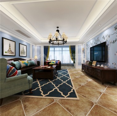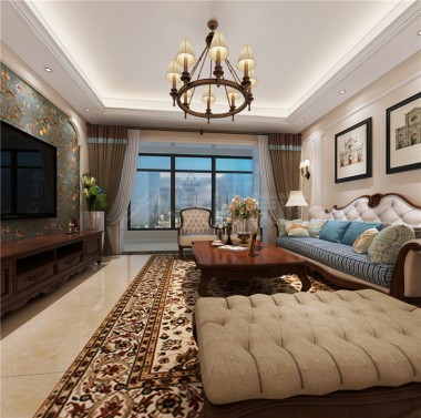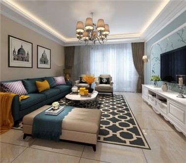 艾美瀟湘150平簡歐風(fēng)裝修案例圖—客廳