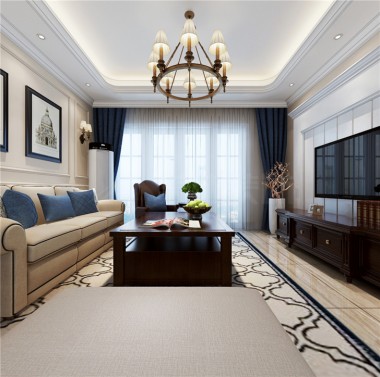海德公園135平簡歐風(fēng)裝修案例圖—客廳