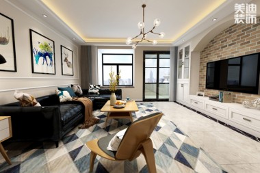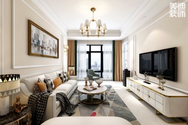 金茂悅82平米簡(jiǎn)歐風(fēng)格裝修效果圖--客廳