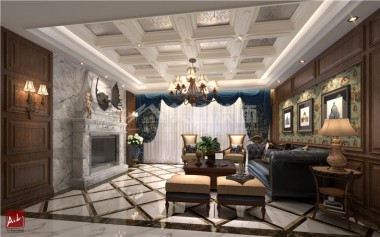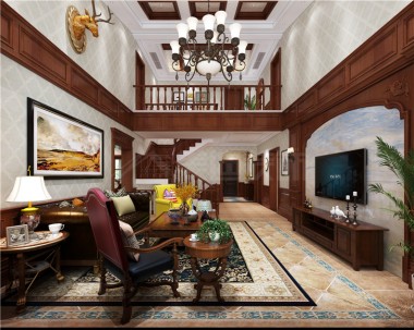 托斯卡納300平美式風(fēng)裝修案例圖—客廳
