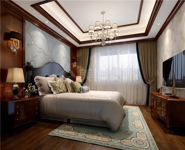 華潤·橡樹灣美式風(fēng)格裝修案例-臥室