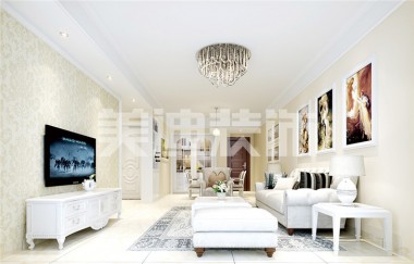 翡翠華庭102平歐式風(fēng)裝修案例圖—客廳