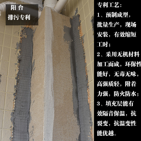 實(shí)用新型的預(yù)成型排污管外管為預(yù)制結(jié)構(gòu),可進(jìn)行批量化預(yù)制以方便在裝修現(xiàn)場(chǎng)成批安裝,有效縮短了裝修工時(shí)。同時(shí),由于采用無(wú)機(jī)材料板作為基板進(jìn)行加工制作而成,其環(huán)保性能好、無(wú)毒無(wú)味、高強(qiáng)質(zhì)輕、膠面附著力強(qiáng)且防火防水,配合玻璃纖維填充層能有效隔音保溫,同時(shí)抗裂變、抗溫變性能優(yōu)越,可廣泛應(yīng)用于廚房煙道、衛(wèi)生間、陽(yáng)臺(tái)排污管道,消防管道包裝。