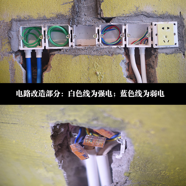 電路布線時(shí),強(qiáng)電、弱電分開(kāi),強(qiáng)電部分為白色電線、弱電為藍(lán)色電線,同時(shí)在每個(gè)電線接口處都包裹有一層錫箔紙防止電流干擾。