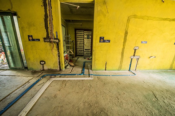 1.鋪設(shè)水管、電線時應(yīng)用紅外線水平儀測量保證橫平豎直且所有地面線管必須用pvc膠將線管接頭密封,防止泥工施工時有水滲入線管使電線老化